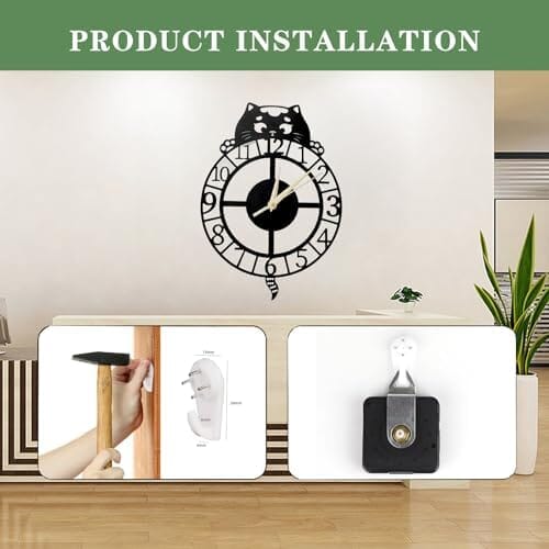 1*12 Inch Rustic Cat Nearly Silent Little Ticking Battery Operated Black Cat Numerals Clock