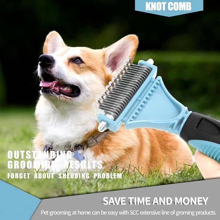 1* 2 Sided Pet Grooming & Deshedding Brush Undercoat Rake for Cats & Dogs S
