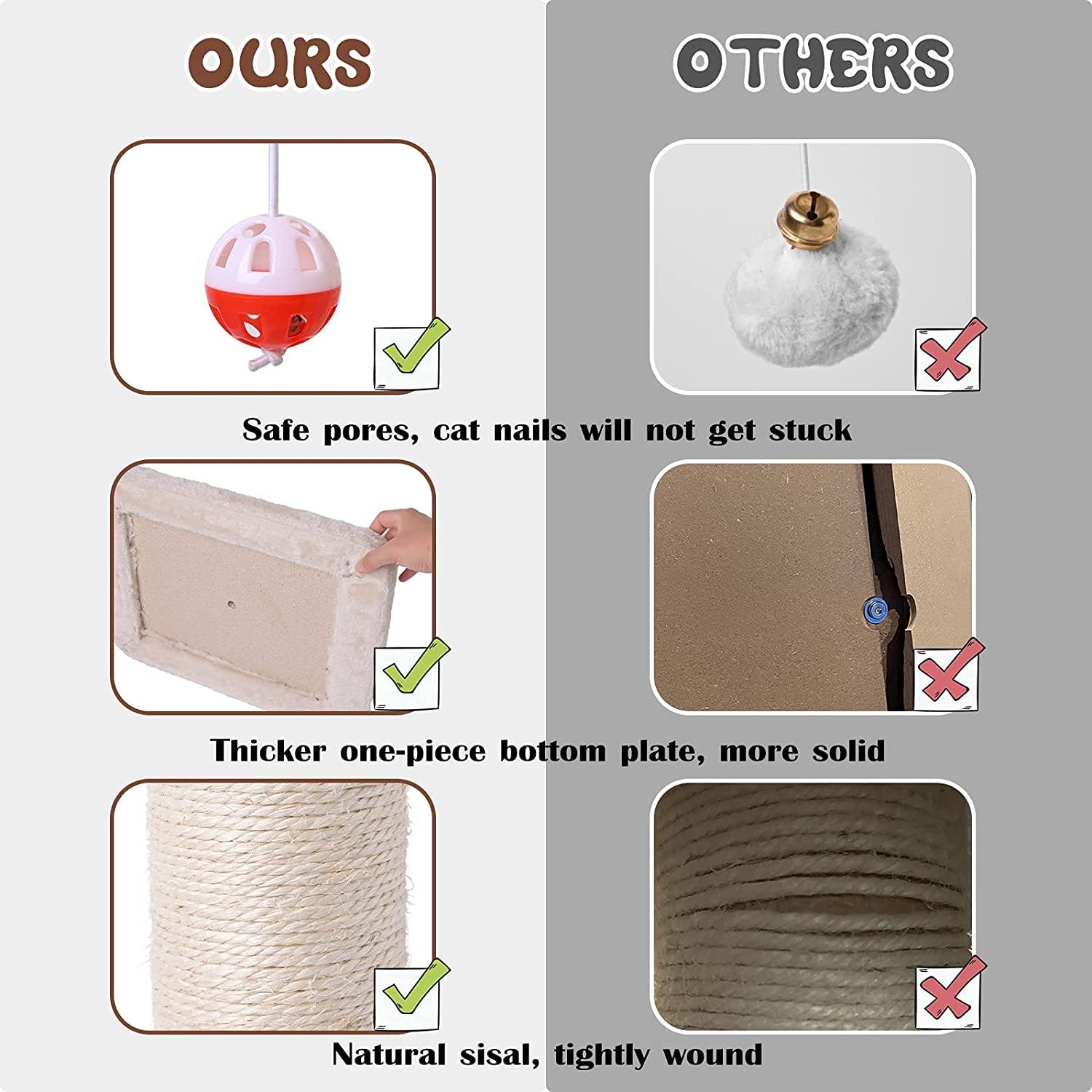 1*30" Tall Cat Scratching Post, Sisal Rope Cat Claw Scratcher
