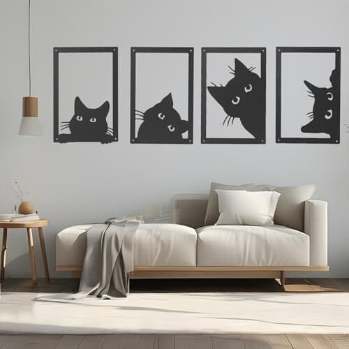 1*4 Pieces Metal Black Cat Wall Art Decor Metal Wall Decor