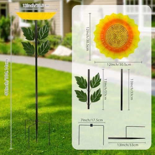 1 * 41 Inches Flower Standing Birdbath & Birdfeeder with Metal Stake