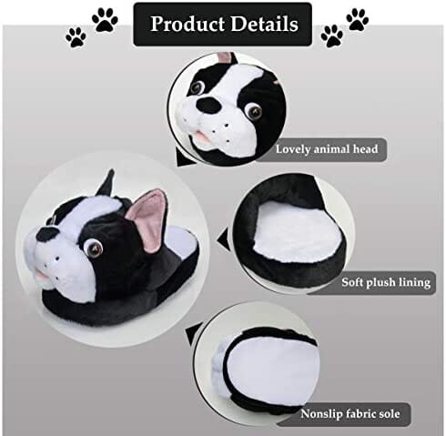 1* Boston Terrier Animal Plush Slippers for Women