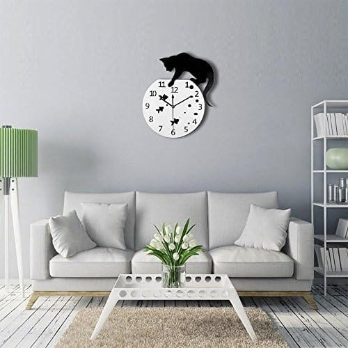 1* Cat on Clock Living Room Mirror 3D Wall Design
