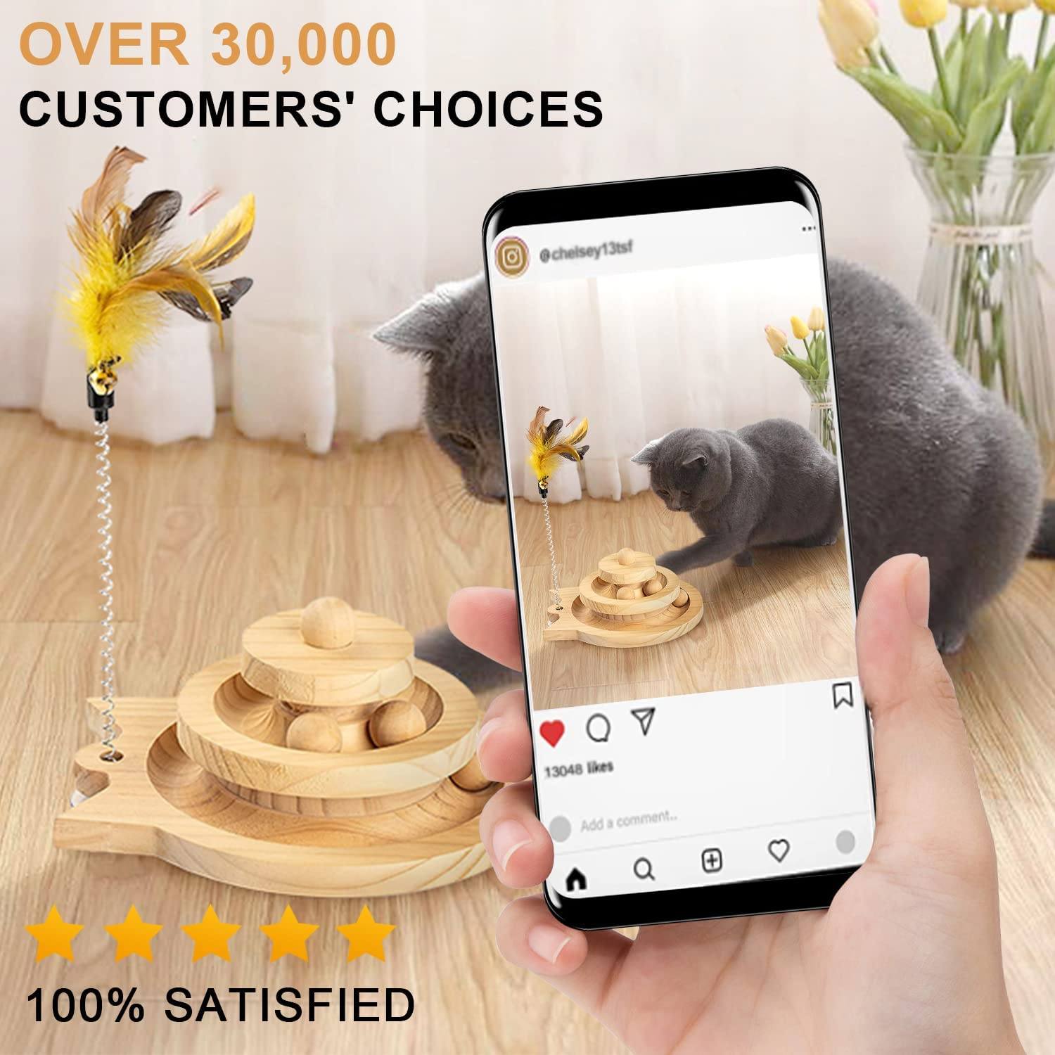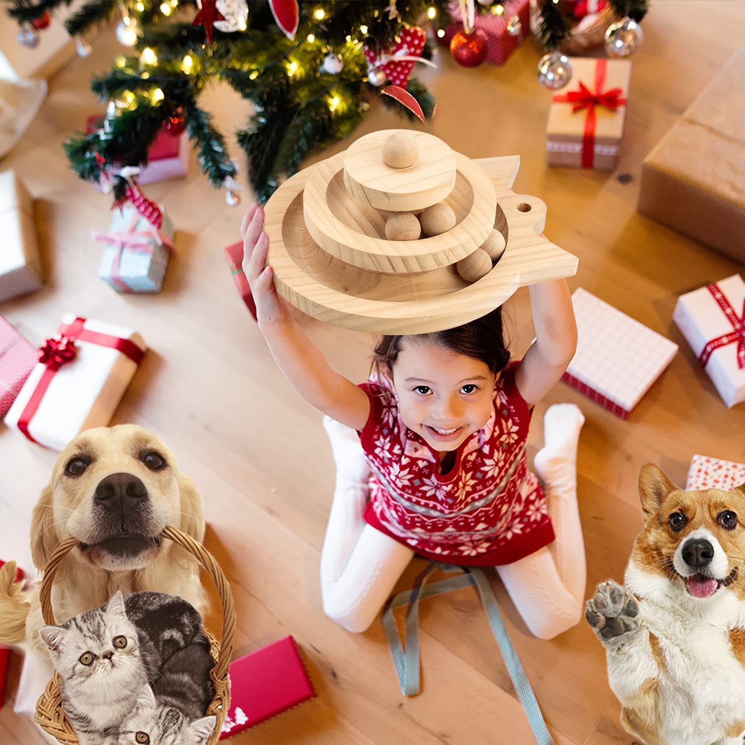 1*Interactive Kitten Toy Roller Tracks with Wooden Moving Balls Catnip Pet Play Toy